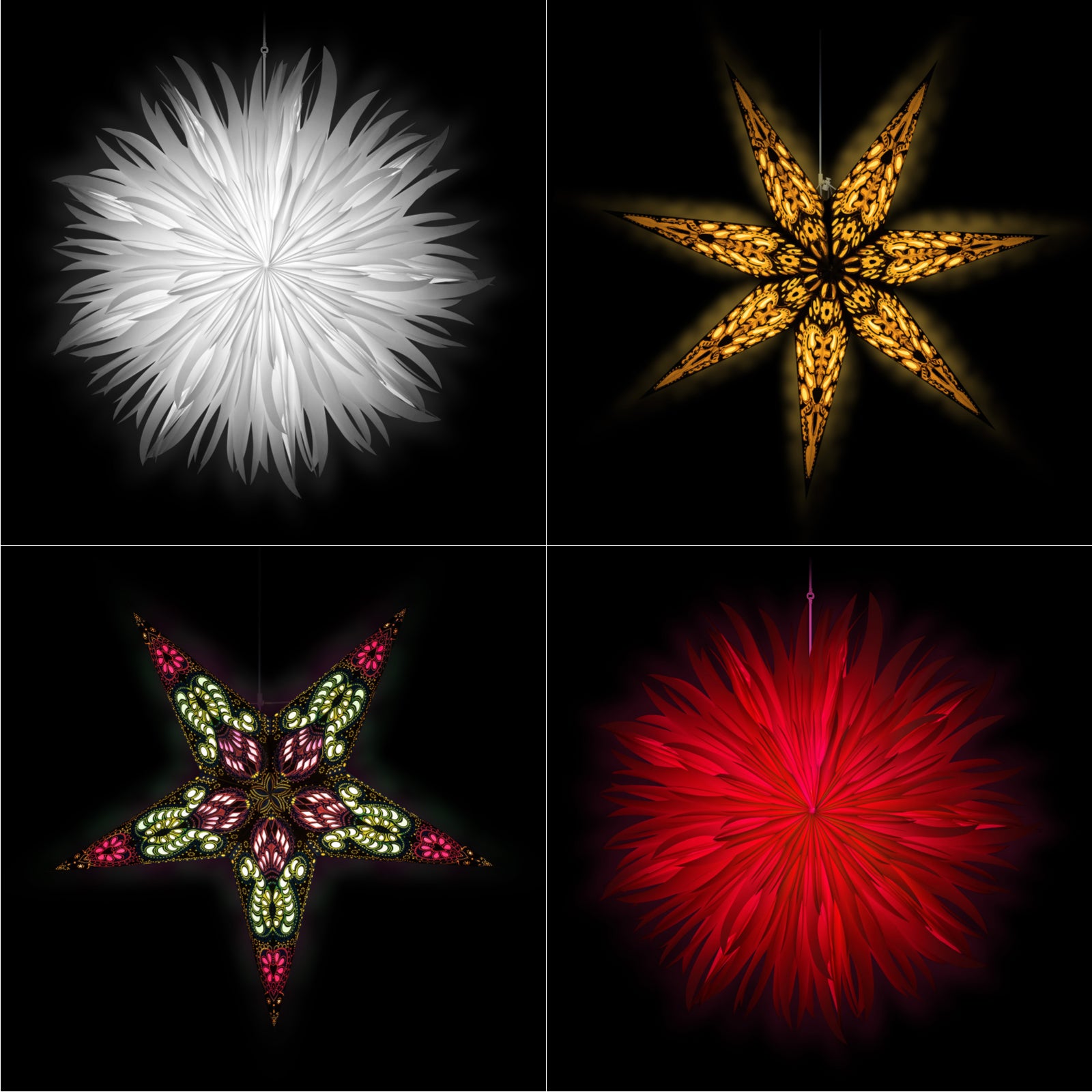 Mit dem Wechsel der Farben ergeben sich bei Ihrem Stern immer neue Farbkombinationen.